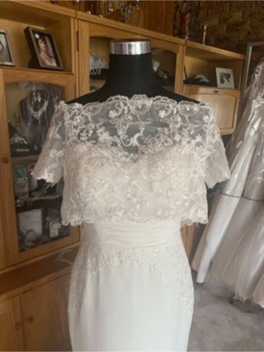 | Style | EY17U08-KB Strapless Chiffon Ivory Wedding Gown with Lace Jacket US8/SA32 |