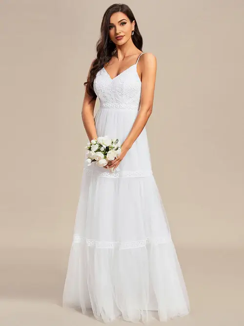 Looking for something different. The delicate spaghetti straps and intricate lace mesh combine to create a timeless and enchanting look.