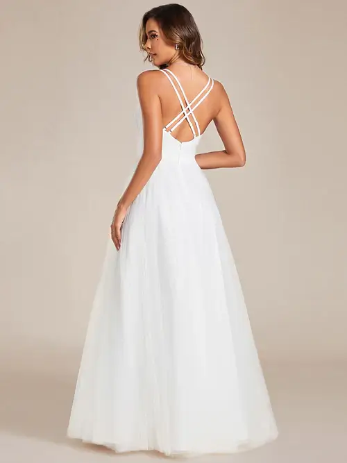 Exquisite lace and a timeless round neck design combine to give this wedding gown an elegant and enchanting look