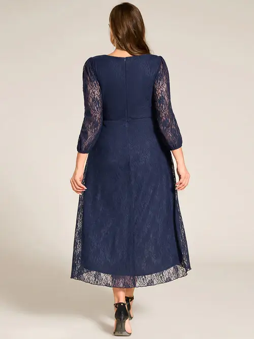 EY2238-EP-PS Lace Midi Evening Gown with Lantern Sleeves