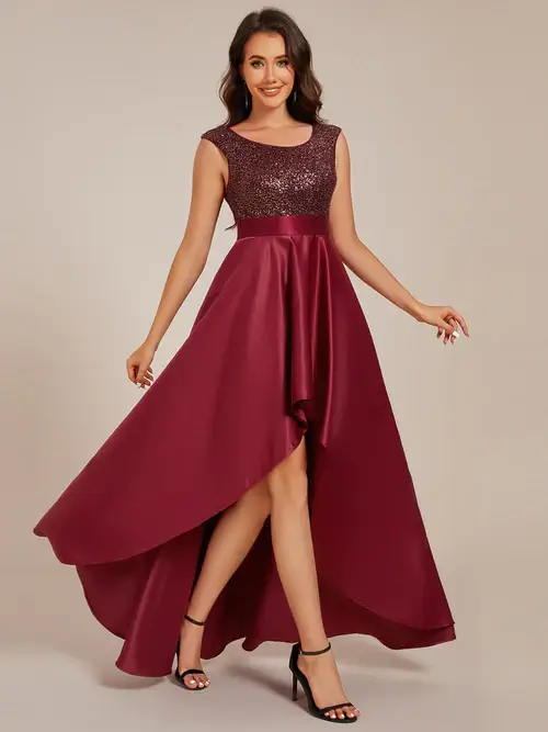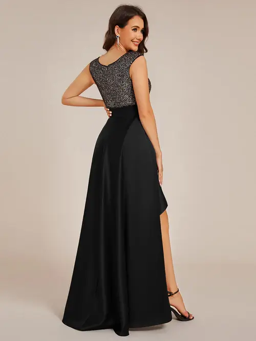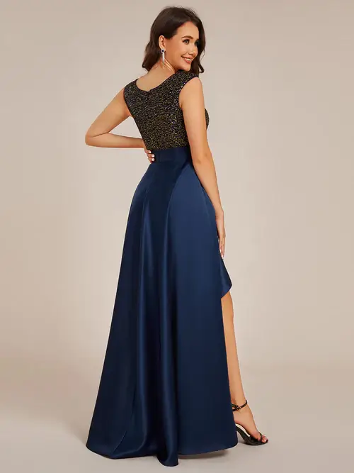 EY3667-EP Sequin and Satin High Low Evening Gown
