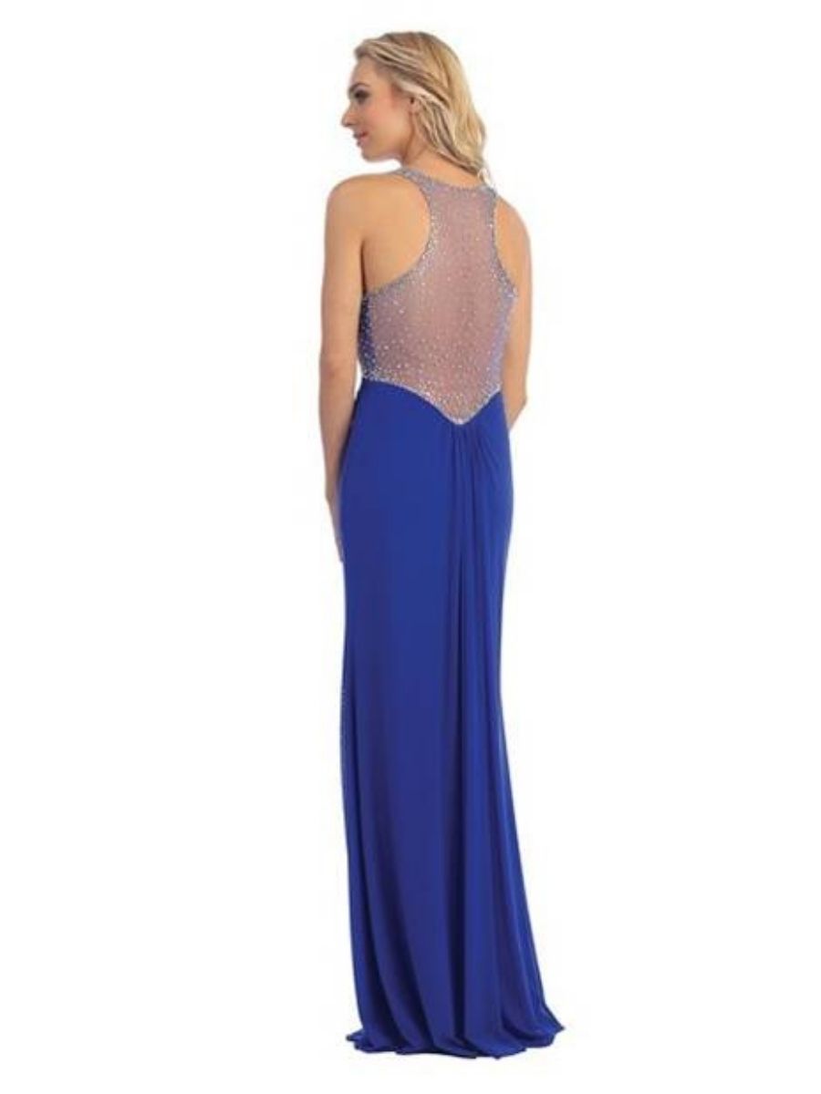 This stunning evening gown will turn heads. The Diamante adorned bodice and see through back is simply beautiful.