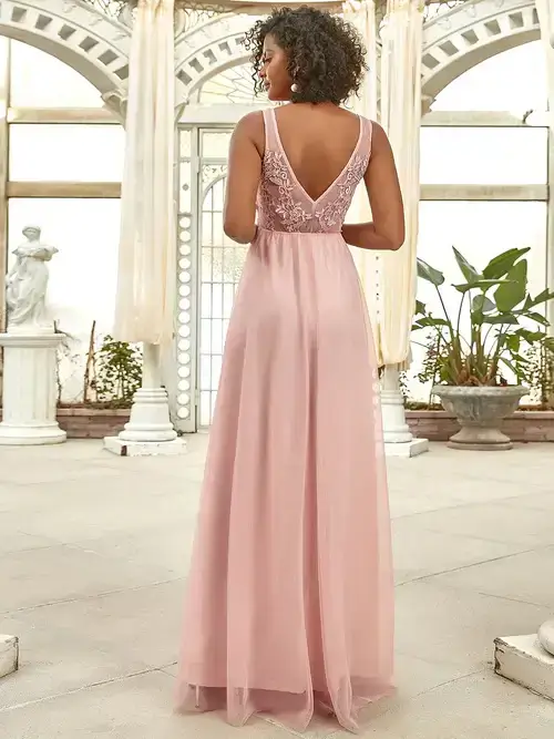 This ethereal tulle and lace applique evening gown creates a light flowy effect. This beautiful dress is perfect for all formal occasions, from evening party, cocktail, weddings to matric farewell and graduation.
