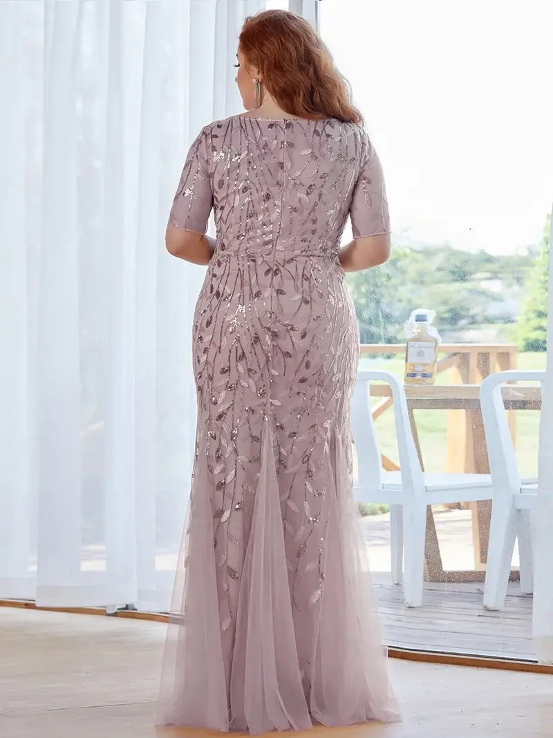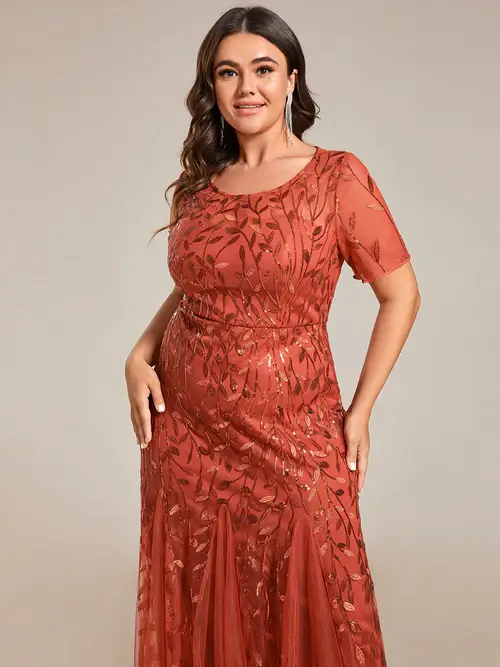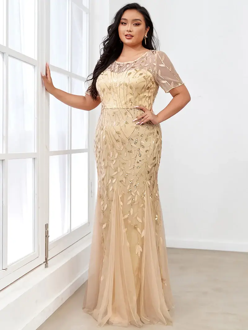 This stunning sequined tulle dress oozes romance with its shimmery leaf design and a sheer round neckline. It is a perfect choice for people who are looking for an elegant look, but its delicate details add just enough flair to show your taste. Suitable for evening party, cocktail, matric farewell, graduation, weddings, and any other formal affair!