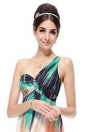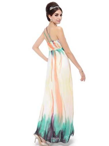 This unique one Shoulder Ruched Pastel Print Long Evening Gown is a crowd stunner.