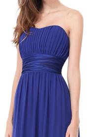 Beloved by brides and bridesmaids, this classic silhouette flatters nearly any body type. The strapless neckline features a subtle sweetheart shape and the satin empire waist slims the lower half of the body. While we think this is a great choice for bridesmaids, we could see this dress being worn to formal weddings as a guest, to matric farewell, or any other evening party.