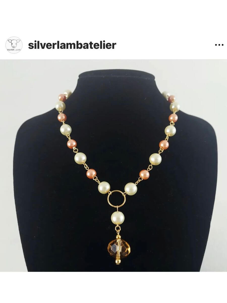 New Dawn Necklace R200. Stainless steel, glass pearls and glass crystal.