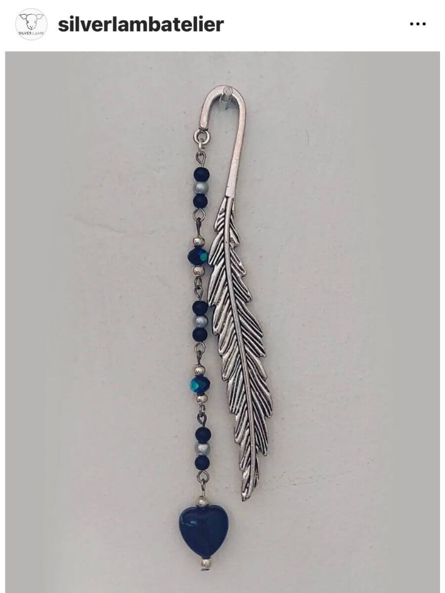 Raven Heart Bookmark R150. Stainless steel and glass pearls.